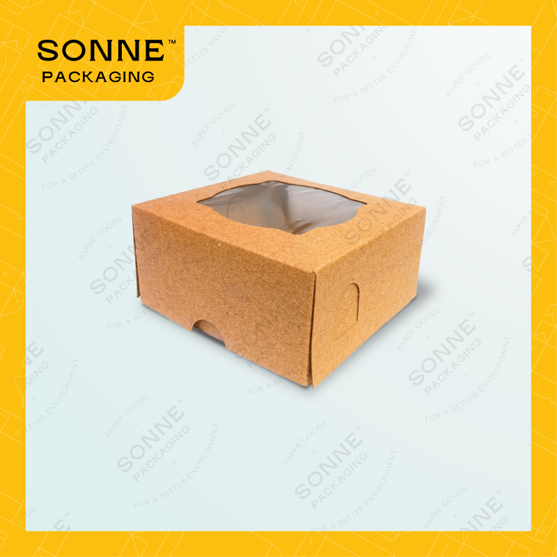 Kemasan berbentuk persegi dan memiliki jendela diatasnya yang ideal untuk wadah donat isi 1. Jendela pada tutupnya selain agar kita bisa melihat isi di dalamnya juga bisa menambah nilai visual sehingga kemasan terlihat lebih elegan dan berkelas. Dibuat dari bahan kraft berkualitas, kemasan ini tidak hanya kuat tetapi juga memberikan kesan ramah lingkungan. Pilihan tepat untuk brand yang ingin tampil minimalis namun tetap menarik.